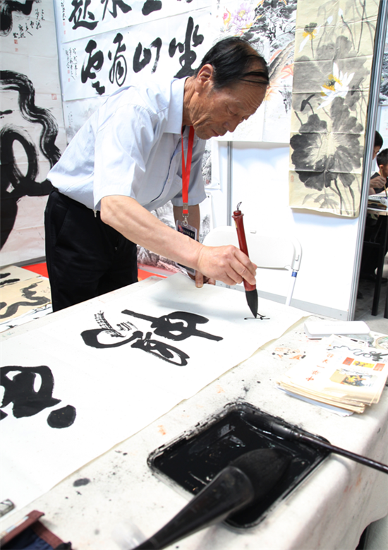 石博會邀請到來自北京、天津、河南、江蘇、甘肅、沈陽及新疆等地的并在全國享負盛名的近80位書畫大師現(xiàn)場揮墨。其中有人物畫、花鳥畫(走獸)、山水畫、篆,隸,行,楷,草書法等作品一一呈現(xiàn)。為社會各界鐘情于傳統(tǒng)書畫藝術(shù)的人士提供與大師近距離接觸的機會,讓到場的各位書畫愛好者大飽眼福,眾多大師的作品給人留下深刻的印象