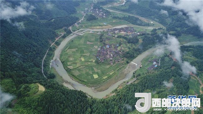煙雨中的貴州省榕江縣寨蒿鎮(zhèn)三洲村風(fēng)光(6月24日無人機拍攝)。