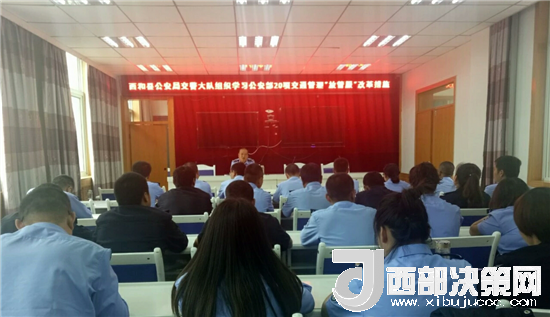 西部決策網(wǎng)——西部大開發(fā)訊(帥華鋒 通訊員 馬存福 蘇娟)為積極回應(yīng)人民群眾對(duì)美好生活的新期待、新要求,公安部部署進(jìn)一步深化改革,提升交通管理服務(wù)便利化工作,并公布了簡捷快辦、網(wǎng)上通辦、就近可辦等20項(xiàng)交通管理“放管服”改革新措施,9月1日起全面啟動(dòng)推行。為深入推進(jìn)公安部20項(xiàng)交通管理“放管服”改革新舉措,全面提升交通管理服務(wù)便利化工作水平,7月2日,甘肅西和縣公安局交警大隊(duì)組織全體人員學(xué)習(xí)20項(xiàng)交通管理“放管服”改革新舉措,大隊(duì)教導(dǎo)員張小明主持會(huì)議。