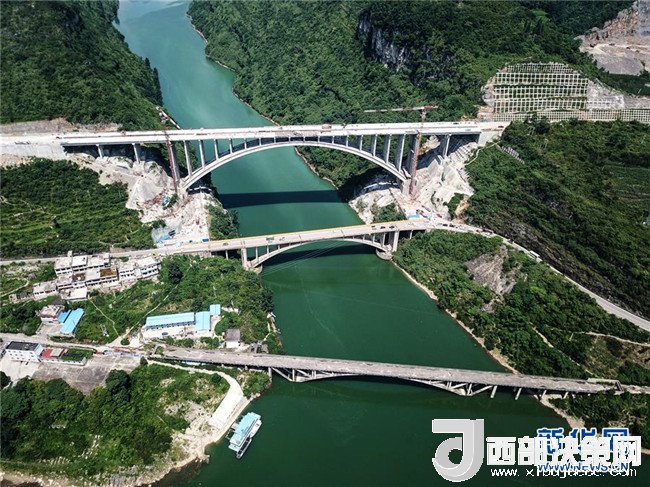貴州織普高速公路控制性工程——夜郎湖特大橋日前實現(xiàn)全線貫通,預計本月底可全面建成。該橋由貴州橋梁建設集團于2016年5月開始施工,全長391.4米,拱圈凈跨徑210米。據(jù)了解,織普高速全長約52公里,建成后由織金縣到普定縣的車程可從原來的2.5小時縮短到35分鐘,將大幅提高通行效率,進一步推動沿線經(jīng)濟發(fā)展。新華社記者 陶亮 攝