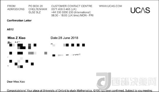 牛津大學(xué)錄取通知書。