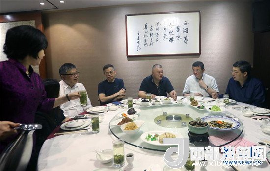 金庸的兒子查傳倜(右三)向朋友介紹武俠與美食(6月16日攝)。新華社記者 李鵬 攝