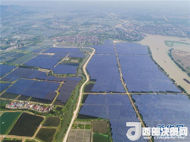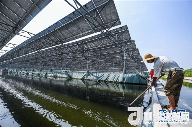 該項目建設(shè)在1800畝魚塘上,形成了板上發(fā)電、板下養(yǎng)魚的獨特景觀,項目裝機(jī)容量60兆瓦,所發(fā)電量全部并入電網(wǎng)。 近年來,浙江省湖州市大力實施能源項目,以太陽能、水能、風(fēng)能等清潔能源替代化石能源,因地制宜實施農(nóng)光互補、漁光互補、林光互補,不僅形成了一條集光伏發(fā)電、農(nóng)業(yè)種植、漁業(yè)養(yǎng)殖、林業(yè)休閑、旅游觀光于一體的生態(tài)旅游農(nóng)業(yè)光伏產(chǎn)業(yè)鏈,更有效推動了能源結(jié)構(gòu)的持續(xù)優(yōu)化,為湖州生態(tài)文明建設(shè)注入綠色動能。截至2018年6月底,湖州市新能源發(fā)電裝機(jī)達(dá)到145萬千瓦,比2017年同期增長40%;2018年上半年累計新能源發(fā)電量8.59億千瓦時,同比增長51%,相當(dāng)于減少煤炭使用量約34.7萬噸,減少二氧化碳排放約85.64萬噸。新華社記者 徐昱 攝
