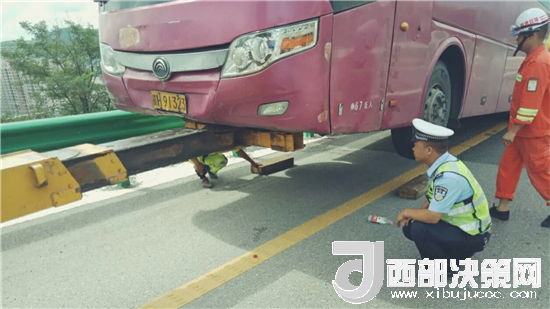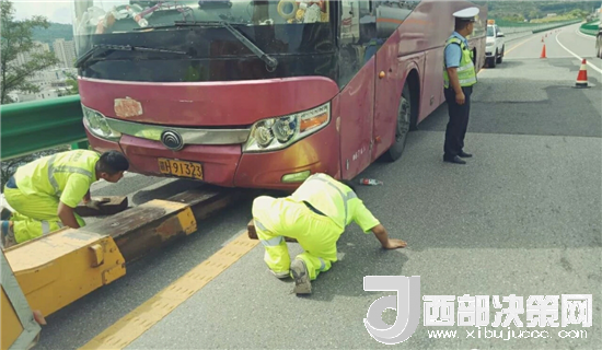 西部決策網(wǎng)-西部大開發(fā)訊(記者帥華鋒 通訊員 馬存福 蘇娟)7月31日上午,甘肅西和縣公安局交警大隊高速中隊執(zhí)勤民警巡邏至十天高速西和段上行線天水方向(西和隧道附近),發(fā)現(xiàn)一輛大客車停靠在路邊,當(dāng)時高速行駛的車輛川流不息,車輛沒有停放在安全地帶,存在著極大的安全隱患。民警上前立即查看情況,發(fā)現(xiàn)車輛故障,67名乘客被困于高速,乘客大多數(shù)為婦女與兒童,由于天氣炎熱,長時間困于車輛中,情緒焦急不安,存在諸多不安全因素,見此情況,民警立即在故障車輛兩百米外設(shè)置安全提示牌,擺放錐桶,現(xiàn)場指揮過往車輛,提醒車輛減速慢行,做好防護(hù)的同時,利用巡邏警車將車上乘客有序轉(zhuǎn)移到一公里外的停車區(qū),積極聯(lián)系高速公路救援中心將故障車輛進(jìn)行拖移,盡快撤離高速,恢復(fù)交通秩序。