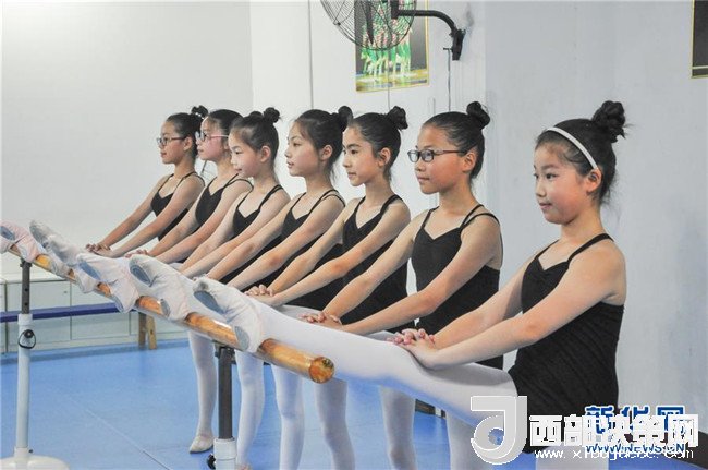 8月2日,小朋友在山東聊城高陽舞蹈學校訓練房內(nèi)練習基本功。 新華社發(fā)(許文豪 攝)