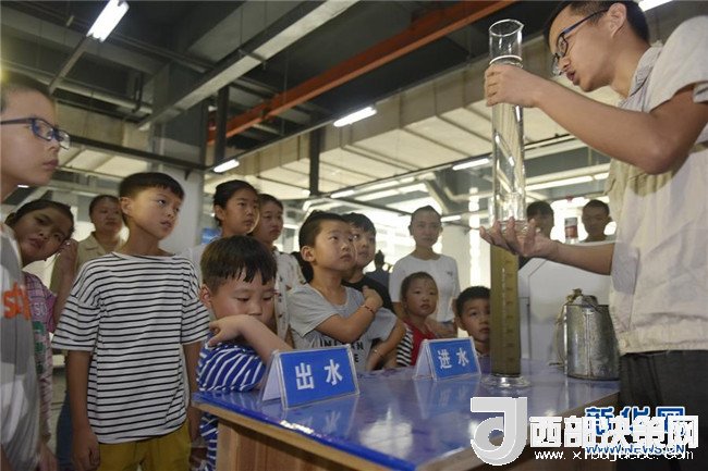 8月2日,小朋友在安徽省合肥市蜀山區(qū)井崗鎮(zhèn)清溪凈水廠的水質(zhì)采樣點觀察進水與出水的區(qū)別。 新華社發(fā)(葛宜年 攝)