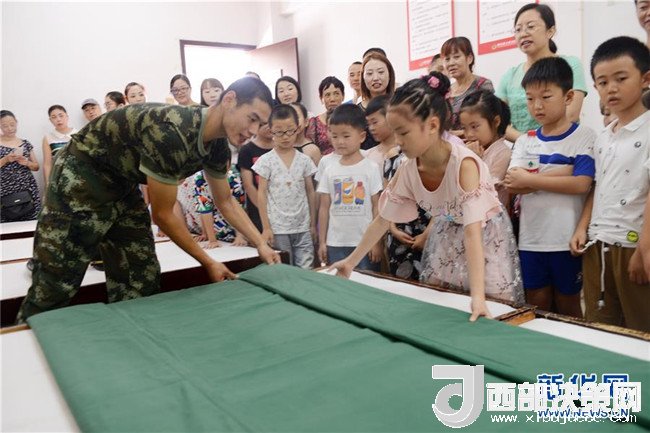 8月2日,湖北省宜昌市秭歸縣實驗小學的學生和家長在縣消防中隊體驗整理內(nèi)務。 新華社發(fā)(王輝富 攝)