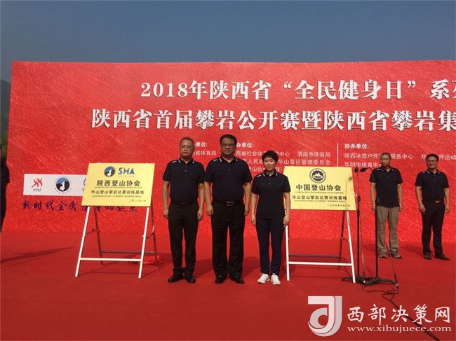 隨后陜西省登山協(xié)會主席陳錚向省攀巖集訓(xùn)隊(duì)教練組代表邱洪樹授“陜西省攀巖集訓(xùn)隊(duì)”隊(duì)旗,并頒發(fā)聘書。陜西省社會體育管理中心主任田凱、渭南市體育局副局長王曉燕、陜西華山旅游集團(tuán)有限公司副總經(jīng)理趙江峰同志共同為“陜西省攀巖訓(xùn)練基地”揭牌。