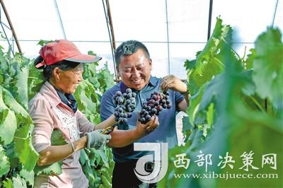 村民劉喜梅、郭翠蓮和姐妹們有說(shuō)有笑地摘著大串葡萄,發(fā)自內(nèi)心的喜悅洋溢在臉上。“過(guò)去,就種點(diǎn)地靠天吃飯,趕上好年景,辛辛苦苦在地里一年忙到頭,人均收入不到1000元?,F(xiàn)在我們不用頂著烈日看天吃飯了,在棚里摘葡萄、修枝剪葉,每月就掙3000到4500多元,這是做夢(mèng)都想不來(lái)的好事。這得感謝黨的好政策!感謝王萬(wàn)斌!”劉喜梅高興地說(shuō)。