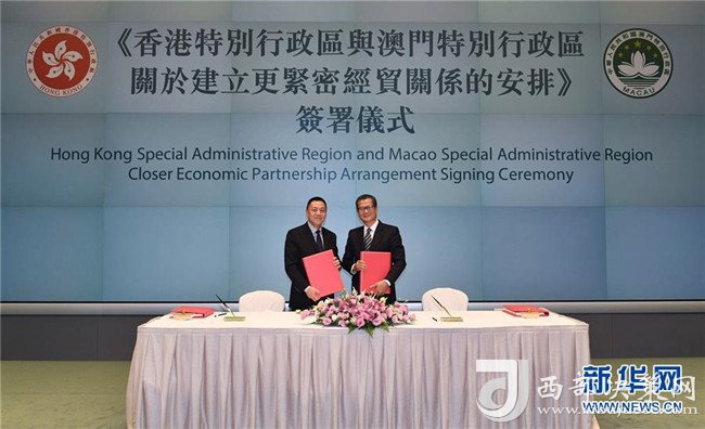 2017年6月28日在香港特區(qū)政府總部拍攝的《內地與香港關于建立更緊密經貿關系的安排》(CEPA)下的《投資協議》和《經濟技術合作協議》簽約儀式現場。 新華社發(fā)(王璽攝)