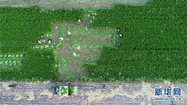 農(nóng)民在寧夏固原市西吉縣興隆鎮(zhèn)收割芹菜(8月9日無人機(jī)航拍)。地處西北內(nèi)陸的寧夏,既有高山大漠的雄渾,又有“塞上江南”的溫婉,自然造化之美自古入詩入畫。自治區(qū)成立60年里,尤其是黨的十八大以來,這片熱土上的人民用勤勞和智慧,發(fā)展特色農(nóng)業(yè)、建設(shè)美麗鄉(xiāng)村、樹立文明鄉(xiāng)風(fēng),繪就一幅全新、壯美的鄉(xiāng)村振興新畫卷。新華社記者王鵬攝