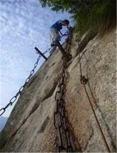 具有700多年歷史的長空棧道,在華山南峰東側(cè)山腰的萬仞絕壁上鑿出來的幾個踏腳之處,鑲嵌石釘搭木椽搭建了一個百余米懸空的棧道,讓人望而卻步,如果你有恐高癥,僅僅看一眼都會讓你驚恐萬分。2013年,著名旅游網(wǎng)站“Smarter Travel”盤點全球最恐怖懸崖步道,將華山長空棧道列為全球十大最恐怖的懸崖步道之一。