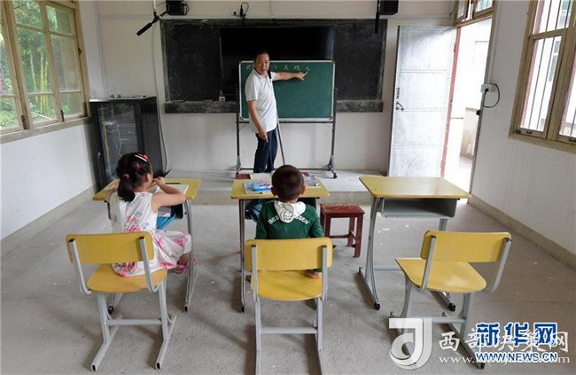 高自仁給一年級(jí)的孩子們上語文課(9月3日攝)。新華社記者 彭昭之?dāng)z
