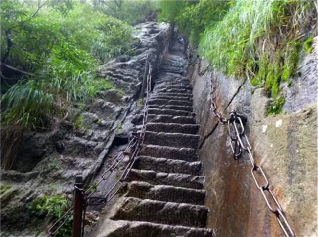 其實,攀爬千尺幢也是如此的感覺。心理上對于險要的感受,隨著腳步的向上移動而上升著,而當你登上千尺幢平臺的時候,那種感覺也應該像過“驚心”“平心”石一樣,先有懼怕和不安,再有平靜與快樂,那時的感覺只有興奮與自豪。那種心路的變化歷程其實就是一種心靈的升華和精神的歷練過程,難道這不是一種特殊的享受嗎?這會讓人銘記在心,終生難忘。