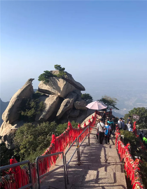 千尺幢:一條峭壁上的大裂縫,陷在兩旁的巨石之間,共370余級臺階,坡度極陡,每級臺階的寬度不過三分之一的腳掌。 俯視腳下,如臨深淵。