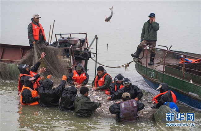 秋天的查干湖,天高云淡,煙波浩渺。26日下午,習(xí)近平乘船沿途察看查干湖南湖生態(tài)環(huán)境。不遠(yuǎn)處,數(shù)十名漁場職工正在拉網(wǎng)捕魚,水花聲、號子聲此起彼伏。習(xí)近平登上浮橋,熱火朝天的畫面躍入眼簾:粼粼波光,網(wǎng)收魚躍。