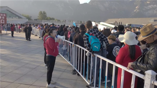 節(jié)日期間,景區(qū)實施了一系列限流、分流措施,集團通過官網(wǎng)、微博、微信、廣播、LED屏幕等平臺定時公布景區(qū)天氣情況、游客數(shù)量、車輛飽和度等信息,在景區(qū)客流即將達到當(dāng)日限控客流時,及時發(fā)布周邊景區(qū)旅游信息,引導(dǎo)游客現(xiàn)行前往周邊景區(qū)游覽。限控措施的實施對景區(qū)山下餐飲、住宿等旅游產(chǎn)業(yè)以及潼關(guān)東山、少華山以及洽川濕地等渭南市周邊景區(qū)起到了有效帶動作用,促進了渭南市全域旅游快速發(fā)展。度節(jié)期間,集團積極協(xié)調(diào)相關(guān)單位,將執(zhí)勤任務(wù)與旅游服務(wù)相結(jié)合,順利完成了反恐防暴、應(yīng)急處突、安全保障、客流疏導(dǎo)等度節(jié)執(zhí)勤工作任務(wù),并在游客中心區(qū)域派駐應(yīng)急通訊車,確保景區(qū)通訊暢通。此外,集團督查工作組持續(xù)深入一線,按照“三必查五必看”的標(biāo)準(zhǔn)要求,突出重點環(huán)節(jié),嚴(yán)格督查工作,推動各單位進一步夯實責(zé)任、提高工作標(biāo)準(zhǔn),有效確保了度節(jié)工作的順利開展。