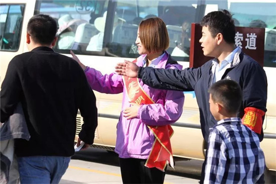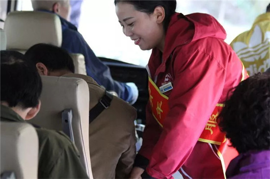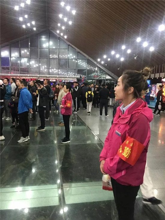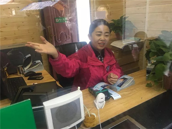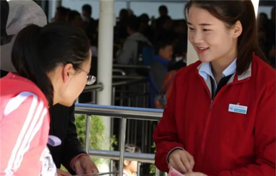負責售票、檢票的工作人員認真的核對游客相關信息,時刻要求自己做到細致嚴謹更快速,一天下來,他們幾乎忙得連喝水的時間都沒有,但是他們時刻保持微笑,讓每位游客感受到“服務至誠”的感覺。