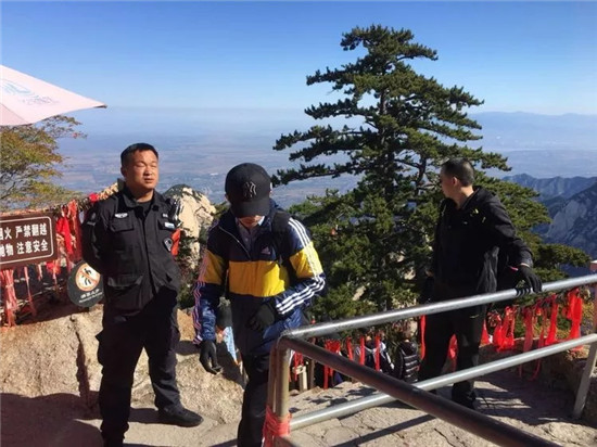 整裝待發(fā),迎接清晨的游客 , 他們是一道亮麗的風景,筑牢了“國慶”華山景區(qū)的安全屏障。