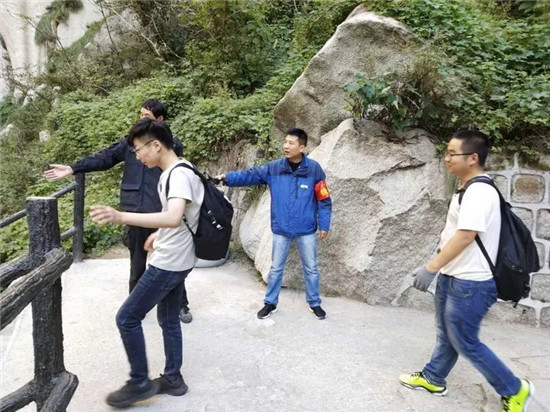 當有行動不便的游客游覽時、當有游客的手機丟失時、當游客的包掉到懸崖下時,第一時間出現(xiàn)在游客身邊,及時為游客解決困難,此時他們的行動是對游客最舒心的安慰。