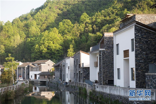 浙江省杭州市富陽(yáng)區(qū)洞橋鎮(zhèn)文村地處富陽(yáng)區(qū)遠(yuǎn)郊,村中保有40幢古民居,建筑師王澍以當(dāng)?shù)氐慕ㄖ牧虾蜕顐鹘y(tǒng)為村里設(shè)計(jì)了14幢新民居,呈現(xiàn)出美麗宜居鄉(xiāng)村新面貌(4月10日攝)。 新華社記者 翁忻旸 攝