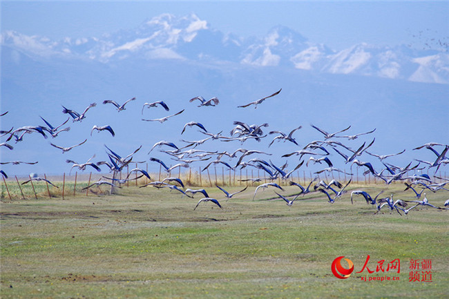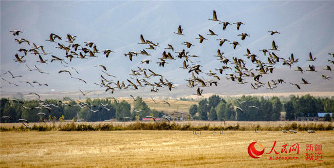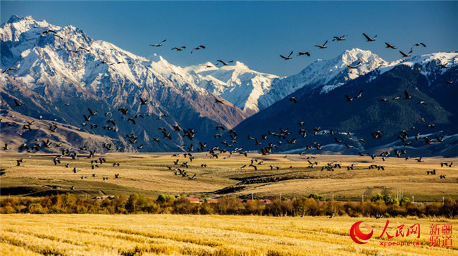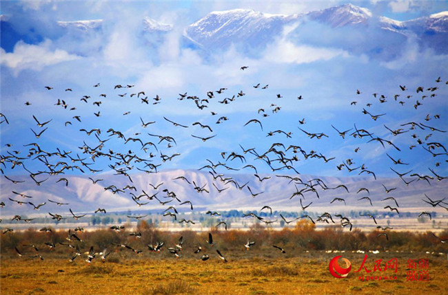 伊犁河谷獨(dú)特的河谷地形和豐富的伊犁河水系,使這里成為一塊豐饒的“濕島”,為各種鳥類提供了豐富的食物。而昭蘇縣作為鳥類遷徙的重要通道之一,每年秋天有近50萬只候鳥通過這里遷徙。(李文武 李忠銘)