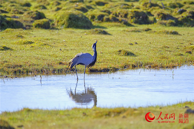 秋日的新疆昭蘇縣是候鳥的天堂。金秋時(shí)節(jié),這里天高云淡、馬肥水美,樺樹、紅柳、薔薇、沙棘等次生林呈現(xiàn)一片金黃,良好的自然生態(tài)環(huán)境吸引了大批灰鶴、大雁、野鴨、天鵝、鸛在此棲息,被游客們稱為“鳥類天堂”,吸引大批游人駐足觀看。