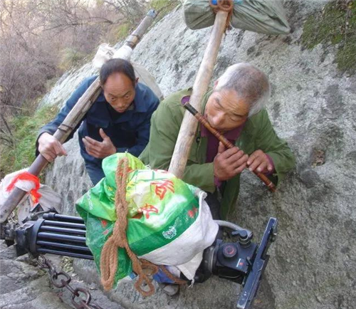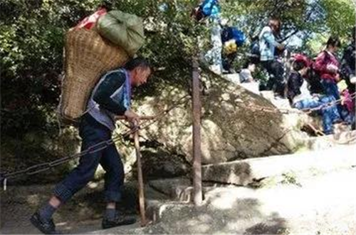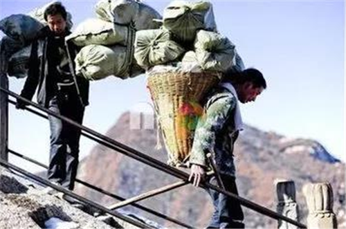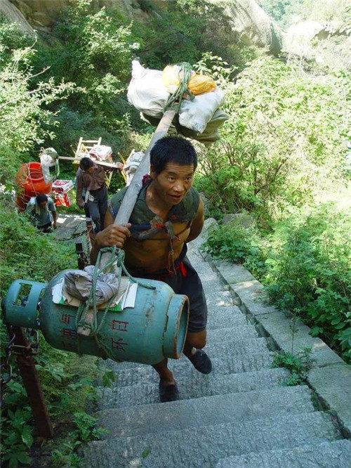 以前爬華山時,碰到的華山挑夫看上去大都三四十歲的樣子,也有年長的,這些人普遍是因為家庭困難,生活所迫,不得已用肩膀挑起了家里的生活重擔!