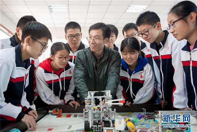 近年來,河北武邑中學(xué)開設(shè)機(jī)器人、航模、科技實(shí)驗(yàn)等趣味科普課程,激發(fā)學(xué)生的創(chuàng)新創(chuàng)造意識(shí)和科學(xué)探索精神,讓學(xué)生近距離感受科技魅力。 新華社記者 朱旭東 攝