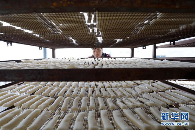 11月4日,在貴州省黎平縣中潮鎮(zhèn)佳所侗寨,村民在晾曬“侗果”粑塊。 近日,貴州省黔東南苗族侗族自治州黎平縣中潮鎮(zhèn)佳所侗寨的村民們搶抓晴好天氣,忙著制作、晾曬“侗果”,侗寨里一派忙碌。“侗果”是當(dāng)?shù)囟弊逋捅貍涞奶厣朗?,是將蒸熟的糯米切成小粑塊后,再經(jīng)曬干、油炸、澆紅糖和上芝麻等工序制作而成。 新華社發(fā)(楊代富 攝