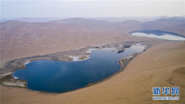 陰雨中的沙漠湖泊,常常讓人以為是一面鏡子(10月18日攝)。 巴丹吉林沙漠位于內(nèi)蒙古西部阿拉善盟,是中國(guó)第三大沙漠,沙丘起伏的曲線陡變成高聳的沙山,碧藍(lán)的湖泊散落在沙海間。 新華社記者 李仁虎 攝