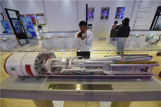 11月5日,一名參觀者在德國展館內拍攝雙護盾盾構機模型。當日,中國國際進口博覽會在上海開幕。國家貿易投資綜合展(國家展)是中國國際進口博覽會的重要內容,共有82個國家、3個國際組織設立71個展臺。國家展中,印度尼西亞、越南、巴基斯坦、南非、埃及、俄羅斯、英國、匈牙利、德國、加拿大、巴西、墨西哥等12個主賓國均設立了獨具特色的展館。新華社記者 韓瑜慶 攝