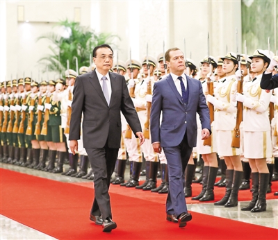 梅德韋杰夫表示,俄中高度互信,全面戰(zhàn)略協(xié)作伙伴關(guān)系不斷走向深入。兩國元首年內(nèi)多次會晤。俄方愿同中方密切高層及各層級往來,深化務(wù)實合作,不斷擴(kuò)大貿(mào)易規(guī)模,增加雙向投資,加快成立創(chuàng)新投資基金,加強(qiáng)創(chuàng)新、電子商務(wù)、農(nóng)業(yè)、能源、核能、交通運輸領(lǐng)域合作。落實好今明兩年俄中地方合作交流年,加強(qiáng)俄遠(yuǎn)東地區(qū)同中國東北地區(qū)合作。共同維護(hù)多邊主義和以世界貿(mào)易組織為核心的自由貿(mào)易體制,就世貿(mào)組織改革問題加強(qiáng)溝通協(xié)調(diào),反對單邊主義和保護(hù)主義。加強(qiáng)在上海合作組織、金磚國家等框架下的配合與合作。