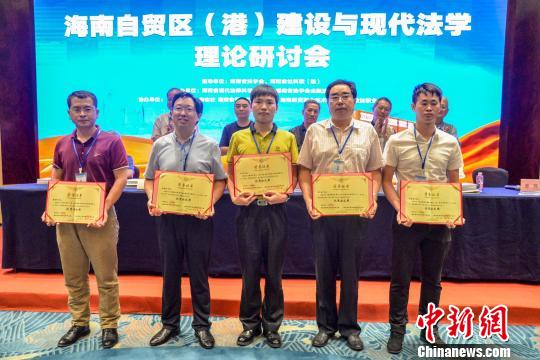 圖為海南省法學(xué)會(huì)向海南自貿(mào)區(qū)(港)法治建設(shè)優(yōu)秀論文撰寫者頒獎(jiǎng)?!『閳?jiān)鵬 攝