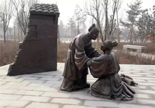 丁蘭,相傳為東漢時(shí)期河內(nèi)人,幼年時(shí)父母雙亡,他經(jīng)常思念父母的養(yǎng)育之恩,于是用木頭刻成雙親的雕像,事之如生,凡事均和木像商議,每日三餐敬過雙親后自己方才食用,出門前一定稟告,回家后一定面見,從不懈怠。久之,其妻對(duì)木像便不太恭敬了,竟好奇地用針刺木像的手指,而木像的手指居然有血流出。丁蘭回家見木像眼中垂淚,問知實(shí)情,遂將妻子休棄。
