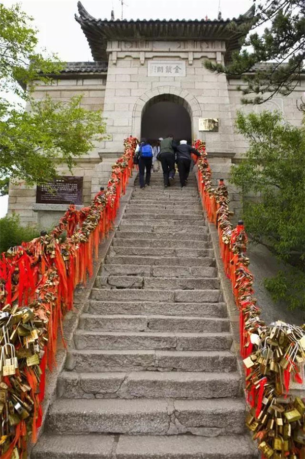 金鎖關(guān)北接五云峰,南控華山主峰,東西兩側(cè)壑深千丈,關(guān)前僅有一米完的臺(tái)階石徑。環(huán)周古松蒼翠,奇石林立,常有祥云環(huán)繞,風(fēng)光非常迤麗。“但有女兒初長(zhǎng)成,便為三秦姣姣容。”說(shuō)的就是奇險(xiǎn)天下第一山的華山除了以其奇、險(xiǎn)、秀而聞名遐邇之外,還別有一番令人動(dòng)容的金鎖關(guān)風(fēng)景:關(guān)內(nèi)、關(guān)外登山路兩側(cè)的鐵索上,情侶鎖、平安鎖,重重疊疊,紅繩彩線迎風(fēng)搖曳,筑成一道美麗的愛(ài)情風(fēng)景線,鎖住對(duì)愛(ài)情的誓言,表達(dá)堅(jiān)如磐石的愛(ài)情忠貞!