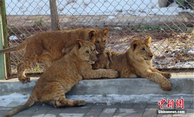 11月13日,西寧,小非洲獅曬太陽。近日,青藏高原野生動物園對外表示,該園繁育成活三只非洲獅。據(jù)了解,三只非洲獅寶分別出生于2018年5月9日和5月15日,均為雌性,其中一對為雙胞胎,目前三只“獅寶”已能自行捕食,體重均達到20公斤左右。此次是該物種在青藏高原誕生并育活的最好“成績”,就目前觀察情況來看,此物種已適應(yīng)青藏高原氣候。中新社記者 馬銘言 攝