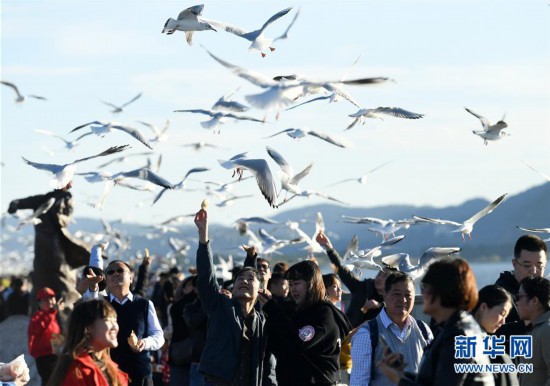 近日,云南省昆明市陽(yáng)光明媚、氣候宜人,不少市民和游客來(lái)到滇池大壩、大觀公園等地,觀賞前來(lái)越冬的紅嘴鷗。新華社記者 藺以光 攝