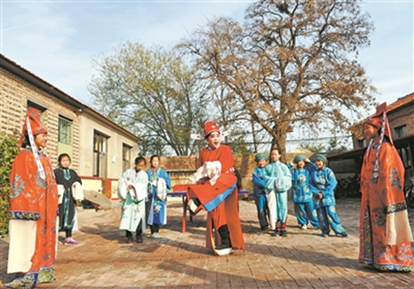 11月13日,河北省益民河北梆子劇團的演員在滄縣西官莊小學為學生講解戲曲動作。近年來,當?shù)胤e極開展戲曲文化進校園活動,轄區(qū)內(nèi)多所中小學引入戲曲課程,以戲曲展演、戲曲名家進課堂、戲曲社團交流等形式,讓學生增進對中國傳統(tǒng)文化的了解。(記者 牟宇)
