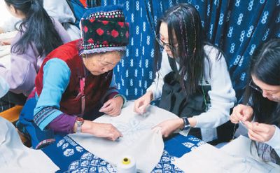何晞瑤對萂村之行記憶更深刻。盡管生長在國際化都市,何晞瑤卻鐘情于傳統(tǒng)和懷舊。她和白族阿媽、阿姐學習刺繡,一針一針學得特別認真,學習結束后,她還把自己準備的小禮物贈送給了當?shù)氐陌鬃謇蠋煛?/p>