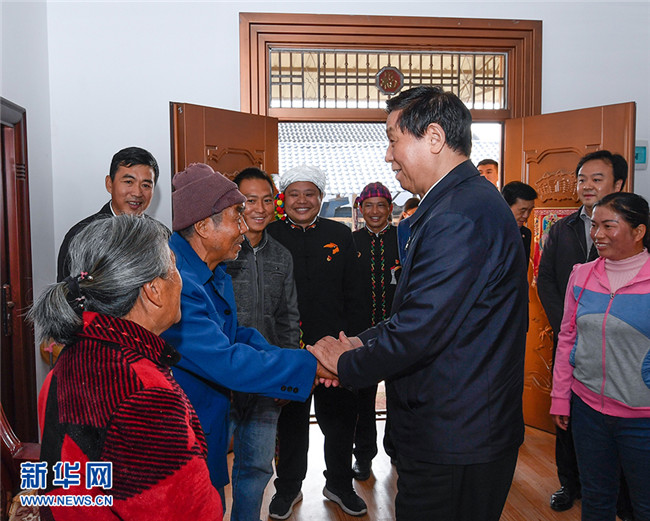 11月28日至12月1日,中共中央政治局常委、全國人大常委會委員長栗戰(zhàn)書在云南就制定基本醫(yī)療衛(wèi)生與健康促進(jìn)法開展立法調(diào)研。這是11月30日,栗戰(zhàn)書在云南省德宏傣族景頗族自治州瑞麗市戶育鄉(xiāng)戶育村,走進(jìn)村民家中嘮家常、問收入、聊致富。 新華社記者 申宏 攝