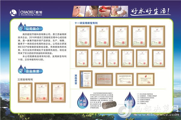 一直以來,工業(yè)行業(yè)飽受冷卻水循環(huán)系統(tǒng)結垢問題困擾多年,目前市場上使用的阻垢藥劑,酸洗等除垢方式由于不能適應新環(huán)保指標要求,由西北工業(yè)大學劉東博士歷時五年,經(jīng)過不懈努力潛心研究,終于在除垢、防垢領域有了質的突破,先后獲得國家級專利13項,其中三項發(fā)明填補國內空白。公司所在地南京超旭節(jié)能科技有限公司是南京市“321計劃”引進企業(yè)。公司現(xiàn)已獲得江蘇省民營科技企業(yè)的稱號,取得國軍標GJB9001B-2009體系認證,公司作為ESEP銅基觸媒防垢器在全國的銷售中心。