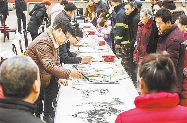 昨日,市文聯系統(tǒng)的藝術家們?yōu)楫數鼐用癖硌萘?3個精彩紛呈的文藝節(jié)目。市文聯等還在現場組織了送春聯、送書畫、送“全家福”合照、送民俗剪紙等活動。“作為一名文藝工作者,只有聽取群眾呼聲、汲取群眾智慧,才能更好地用文藝為群眾服務。”市文聯副主席程聯群說。(記者 趙迎昭)