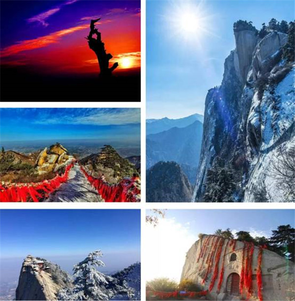 石蓮鋪地,華岳擎天。勢(shì)行斧刃,剛插云環(huán)。北臨黃渭,東鎖潼關(guān)。南依秦嶺,西望長(zhǎng)安。華山等你來(lái),一道呼吸新鮮空氣,遠(yuǎn)離霧霾。