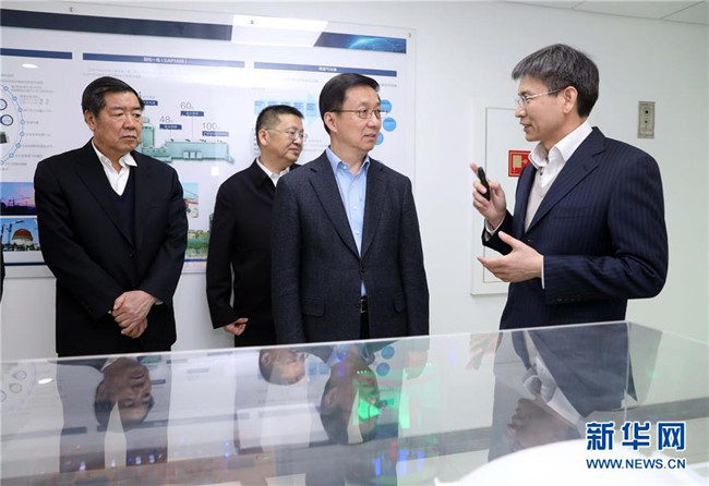 1月8日,中共中央政治局常委、國務(wù)院副總理韓正到國家能源局調(diào)研并主持召開座談會(huì)。這是韓正來到中國核電發(fā)展中心,了解核電發(fā)展現(xiàn)狀、自主創(chuàng)新和核心技術(shù)攻關(guān)、安全運(yùn)行等情況。 新華社記者 劉衛(wèi)兵 攝