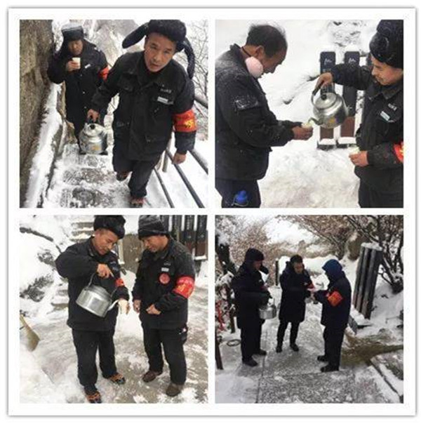 他們彼此照料、相互取暖,他們不辭辛苦,為掃雪的兄弟們遞上一杯杯溫暖的姜湯。最美的不是下雪天,是和你一起不畏嚴(yán)寒的奮戰(zhàn)。
