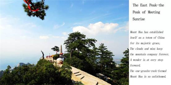 位于陜西省西安市以東120公里的華山是中華五岳之一,也是中國(guó)最受歡迎的旅游勝地。它以美麗的自然景色和古老的道教寺院而聞名,但華山最著名的還是那直上山巔的驚險(xiǎn)山路。華山號(hào)稱“奇險(xiǎn)天下第一山”,它那難以置信的驚險(xiǎn)道路使得華山足以自豪地配得上這個(gè)榮譽(yù)。如果你計(jì)劃挑戰(zhàn)它,你應(yīng)當(dāng)記住,華山更適合于徒步攀爬,這樣你就不需要特殊的裝備,只是你、大山或者再加一雙手套而已。