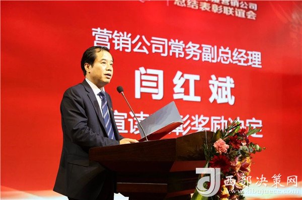 西鳳酒營銷公司常務副總經(jīng)理閆紅斌宣讀《關(guān)于對2018年度先進單位、先進個人給予表彰獎勵的決定》