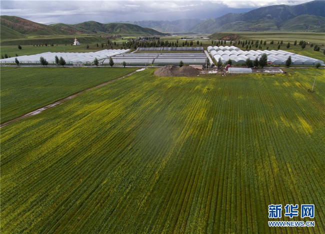 這是理塘縣濯桑鄉(xiāng)濯桑現(xiàn)代農(nóng)業(yè)雙創(chuàng)中心(2018年8月11日無(wú)人機(jī)拍攝)。理塘縣甲洼鎮(zhèn)、濯桑鄉(xiāng)等鄉(xiāng)鎮(zhèn)集中使用產(chǎn)業(yè)扶持資金,跨村集中抱團(tuán)發(fā)展設(shè)施蔬菜大棚,讓貧困人口在園區(qū)獲得穩(wěn)定收益。新華社記者 江宏景 攝