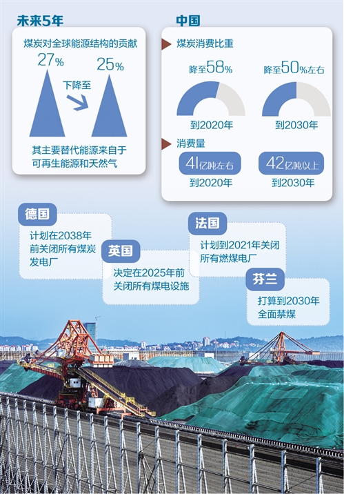 《報告》顯示,未來5年全球煤炭需求將保持穩(wěn)定。歐洲和美國市場煤炭消耗將下降,但其下降的份額將被印度和其他亞洲國家的增長抵消。未來5年,煤炭對全球能源結構的貢獻將從27%下降至25%,其主要替代能源來自于可再生能源和天然氣。